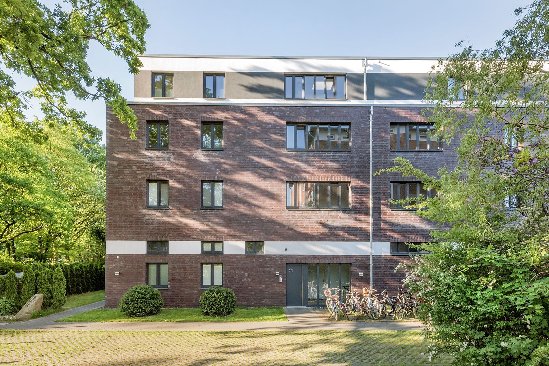 Das Gebäude wurde in zwei Reihen errichtet und zeichnet sich durch eine individuelle Fassadengestaltung aus, die den Charakter der einzelnen Baukörper betont. Unsere Beratung und Unterstützung stellten sicher, dass der gesamte Bauablauf reibungslos und effizient umgesetzt werden konnte.