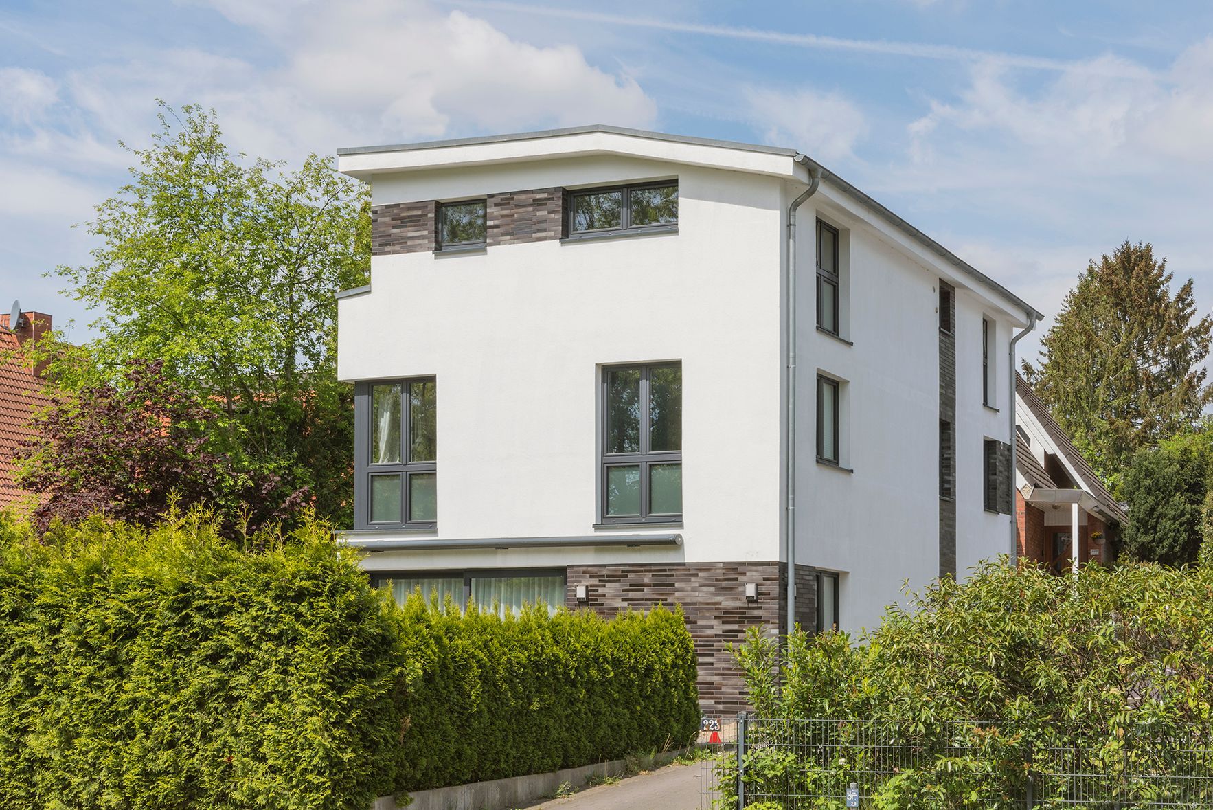 Besonderen Wert legten wir auf die Fassadengestaltung: Mit hochwertigen Riemchen wurde das Gebäude harmonisch an die Optik der Nachbargebäude angepasst, sodass ein einheitliches und stimmiges Erscheinungsbild entstand.